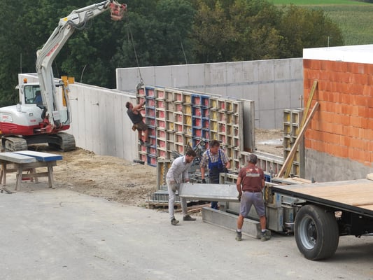 wiedemauchsei die baustelle schaut jetzt so anders aus. bum. von einer stunde auf die andere. ich hab das gefühl alle haben noch tempo zugelegt. ich denke der gute kuchen jeden tag machts möglich. es gibt jetzt hohlwände, und fast ist alles fertiggeschalt! es hat sich ausgeschalt!